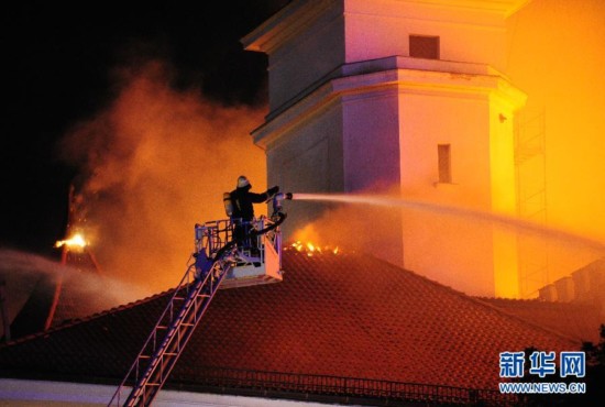 拉脫維亞總統(tǒng)府突發(fā)大火 國家消防救援部門趕撲救援
