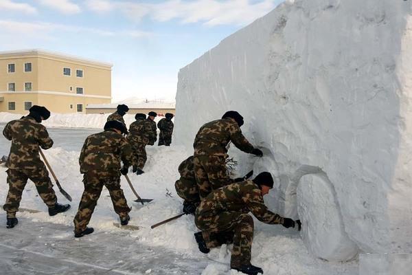 用白雪雕刻的消防車長9米、寬2米、高3米,此外,還在營區(qū)內(nèi)制作了長城、警徽等雪雕作品,打造雪雕警營文化。