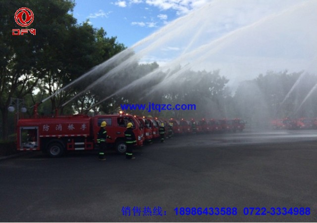 湖北江南專用特種汽車有限公司專門為小區(qū)、村鎮(zhèn)、糧庫、碼頭、校園、商場、工業(yè)園設(shè)計了一種簡易消防車又稱多功能灑水車,它有灑水車的前沖、后灑、側(cè)噴和工作平臺,它的前沖寬度能達(dá)到14米,側(cè)噴水炮射程可以達(dá)到24米。